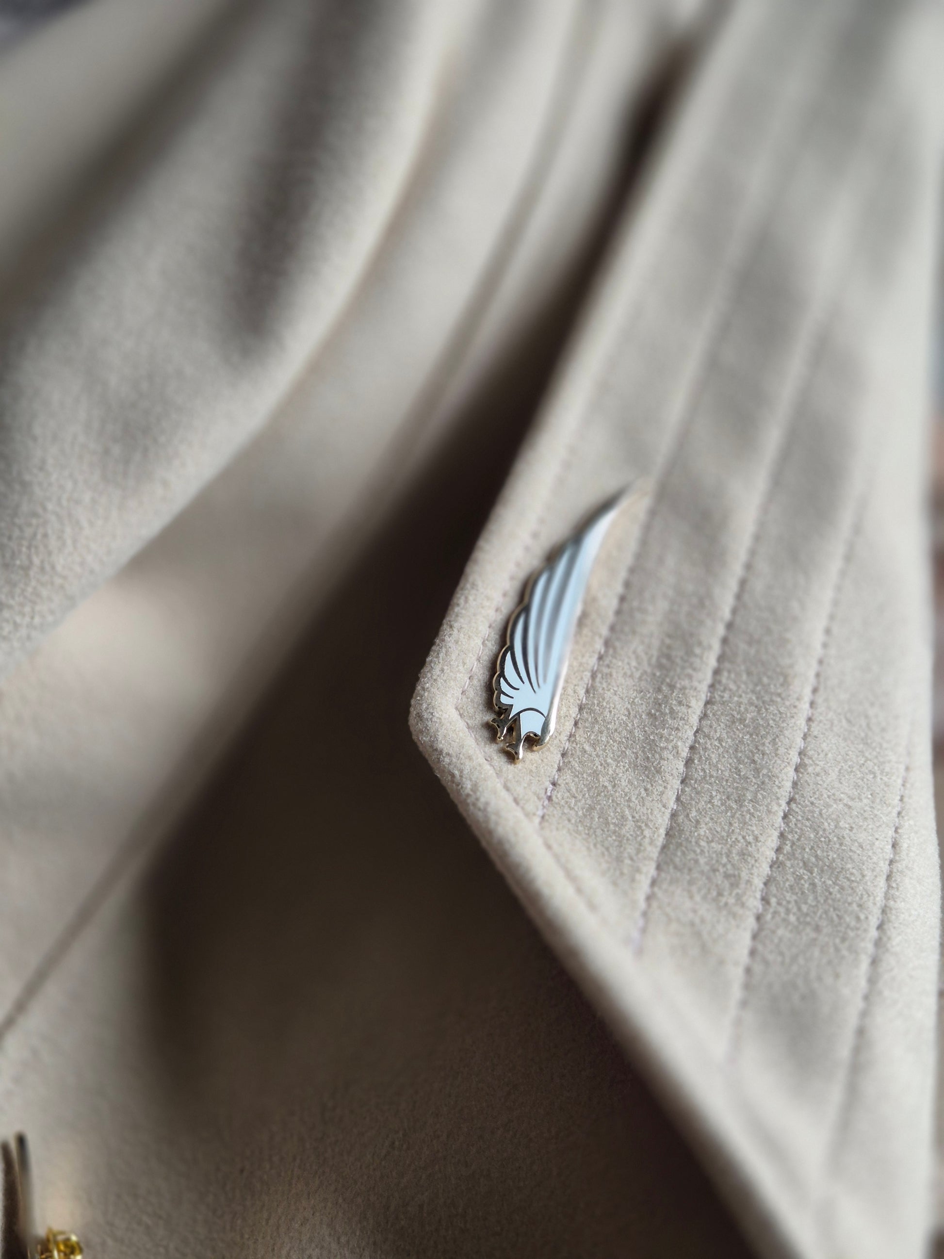 Empower your style, with the Blinding Angel badge by Raheen.